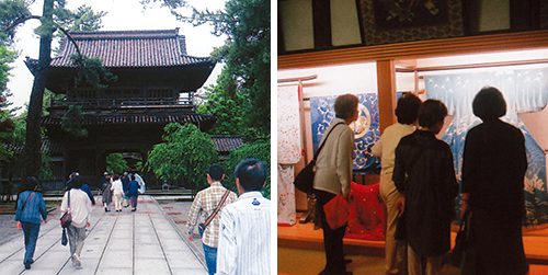 いつもはネクタイ姿で進行役の自分が今日は浴衣姿で単なるヨッパライです。「月照寺の面々は何でこんな愉快な人々ばかりなんだろう、いいのかなこんなに楽しくて」(福田添乗員ご苦労様)遅くまで楽しんで二日目明ければ雨模様。近くの江戸村観光は中止。(ちょっと嫌な予感)それでも気を持ち直して次の目的地、古刹・曹洞宗天徳院へお参りです。立派な伽藍です。ここは、加賀藩、前田利常公の正室「珠姫伝説」の残る寺院で人形劇等も上演してくれました。ゆっくり参拝できました。そして、兼六園近くで昼食を済ませ、最終の立寄り所、金沢の台所「近江町市場」で各々気ままなお買い物です。気の利いたお土産は見つかりましたでしょうか?さあー、これで明石へ帰ります。